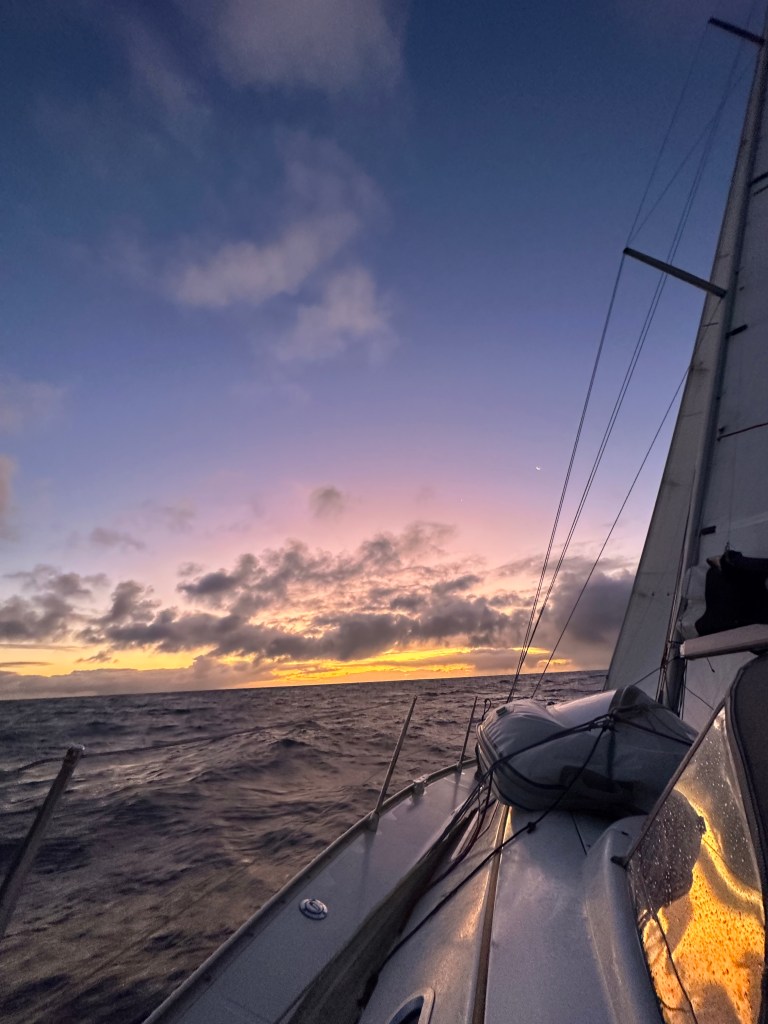 The voyage was a mixture of fresh winds and doldrums. Being becalmed in the middle of the Tasman allowed one of the coolest experiences with Dave and I stripping to our undies and going for a swim. The closest land was about 1,200 km’s away, and the depth of the water was about 5kms. Dave had an old mask and when he handed it to me and I looked down into the depths I will always remember this incredible blue light that seemed to radiate up. The experience was also pretty sobering. I’m not a great swimmer and I’ve been suffering with a torn shoulder muscle for the past couple of years, but even in my ‘togs’ I could barely keep up with the boat slowly drifting along at about a knot and a half. If I ever fall overboard catching up with the boat is unlikely to be an option.
