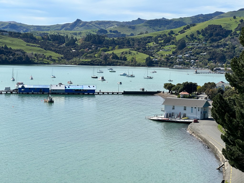 An hour or so later we finally dropped anchor in French Bay, Akaroa spread out before us.