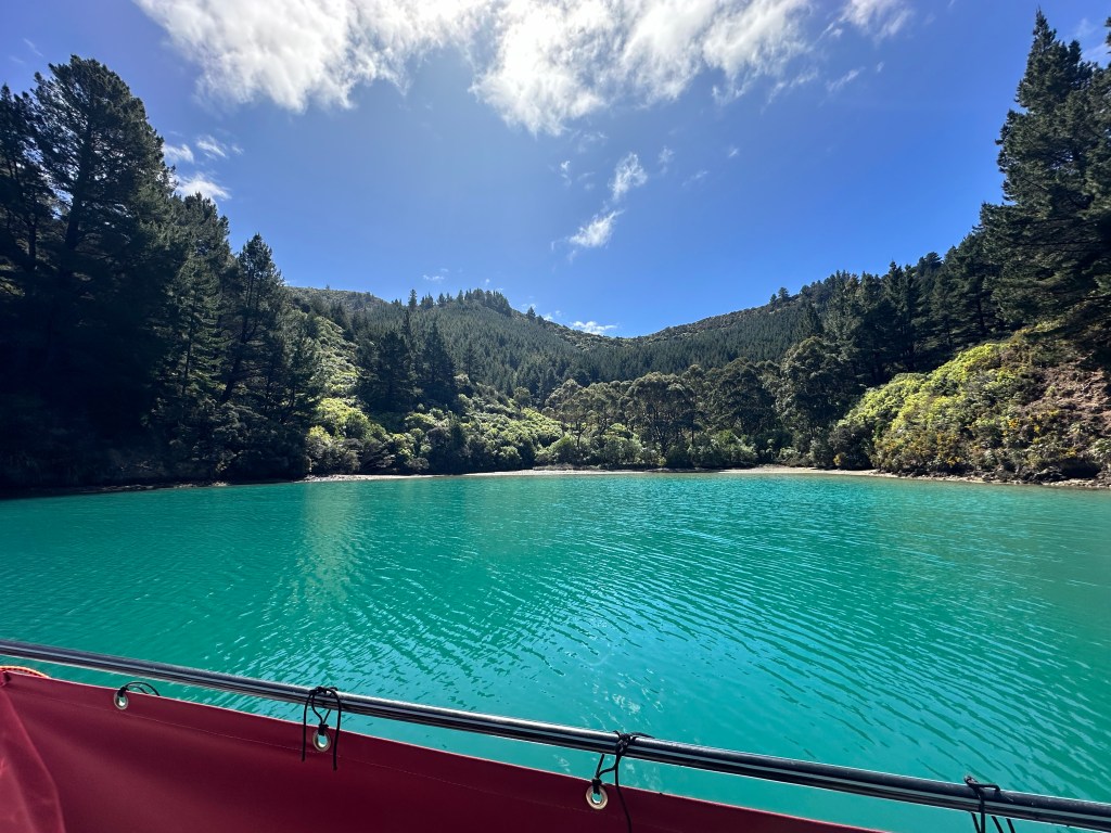 We left Lyttleton early on the 7th of October heading to Port Underwood, a sheltered area that would allow us to wait for suitable weather to get through the notorious Cook Strait and into the Marlborough Sounds.