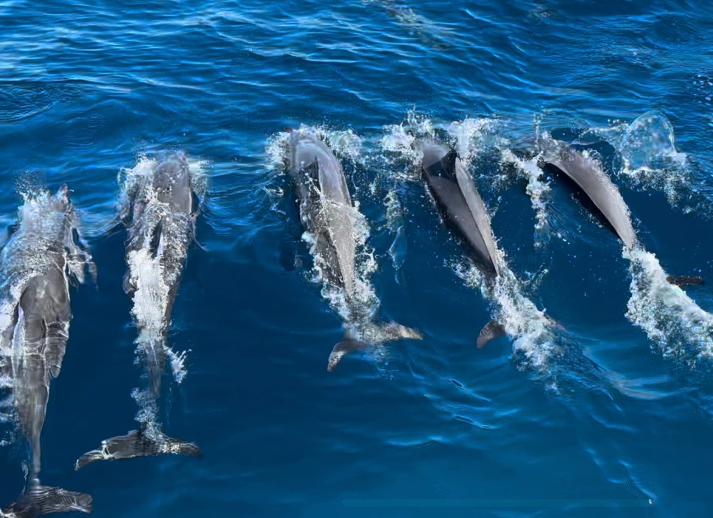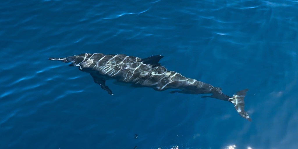 We left Kia Island with a nice easterly breeze that allowed us to sail for most of the morning. Alas, later in the afternoon the breeze slowly died away and we ended up motoring in very hot and humid conditions. During this time we were joined by one of the largest pods of dolphins we have met to date, and they swam at the bow of the boat in the crystal clear water.