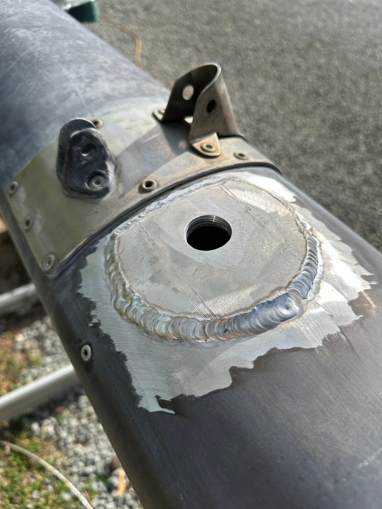 With the mast down we needed to remove all lines and wires to prevent them being melted during the welding process. We then detached the three points on the mast where the shrouds attach, a process that required us to make an improvised press before we could finally free them. Then we had to remove a number of cleats and the sheaves from the mast that the lines run through. By the time we were done the mast was almost a bare aluminium tube, 13.5 metres long. At this point Sam suggested that it might be a good idea to think about painting it. The bronze anodised finish was faded in places and there was no way that we would be able to find a paint to cover the reinforcing patches that would blend in, so painting didn’t seem a silly idea. Hopefully, we will never have the mast down again and painting it in situ, on the boat, would be nigh on impossible.