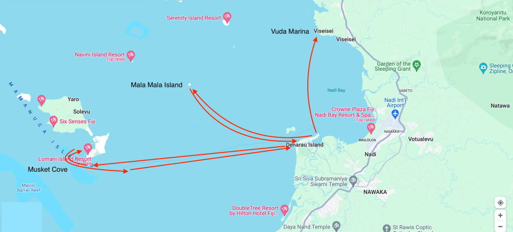 Of course, our stay at Vuda wasn’t all work, work, work. We found the time to catch up with friends, to visit the resort next door and spend a few hours by their pool, and to catch up with Eugeni in Denaru (and visit the chandlers there). Though the situation wasn’t ideal the setting was so beautiful that we still felt incredibly.