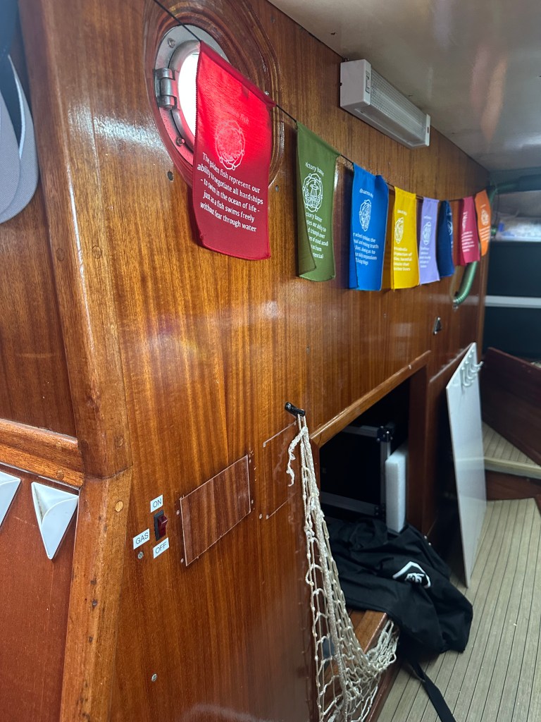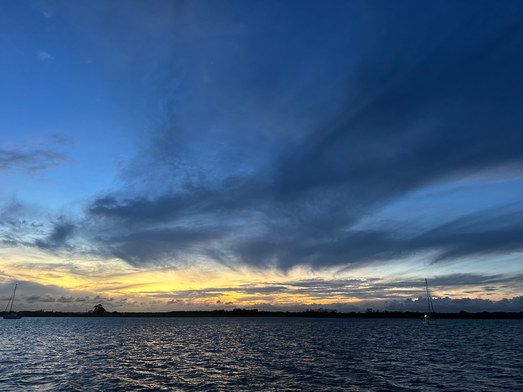 Next time: we finally leave Bundaberg, we cross two sand bars in a day, we enter Mooloolaba Harbour at night and unintentionally join a Christmas parade, we enjoy other nautical frolics and mayhem…