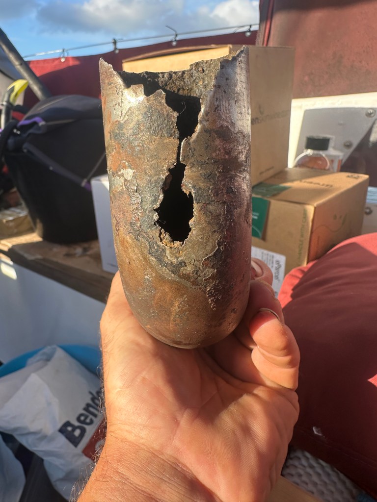 Too many anodes seemed equally unlikely. We have less anodes on her than she has had in the past, and our research suggests that we have slightly less than we should have (which is not a problem as long as we make sure the anodes don’t completely erode away before we change them).