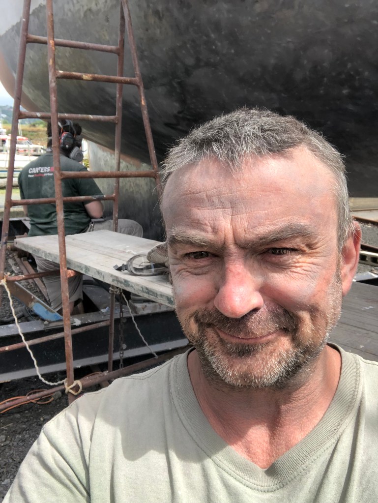 Taurus was hence lifted onto the hard, Cara prepared to fly back to NZ, and we moved into temporary accomodation at a nearby campsite as we couldn’t live on the boat whilst it was being sandblasted.