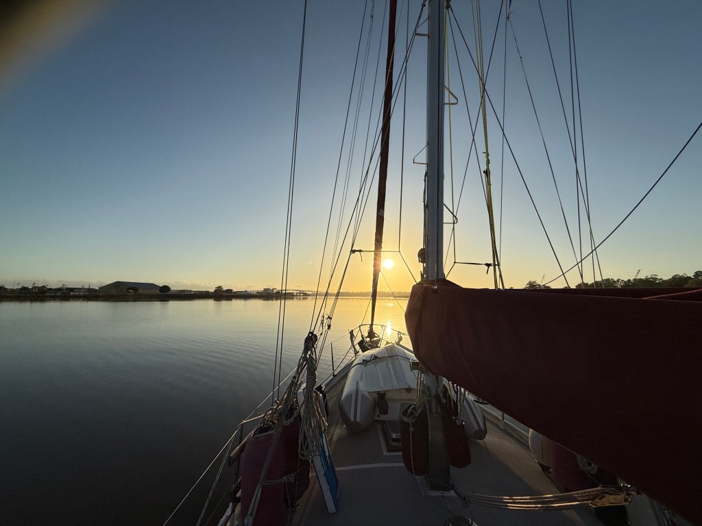 We headed down the Brisbane River early next morning to take advantage of the outgoing tide, and after some fun and games trying to fuel up at a jetty where the pump’s hose was too short to reach our fuel intake, we found ourselves back at sea.