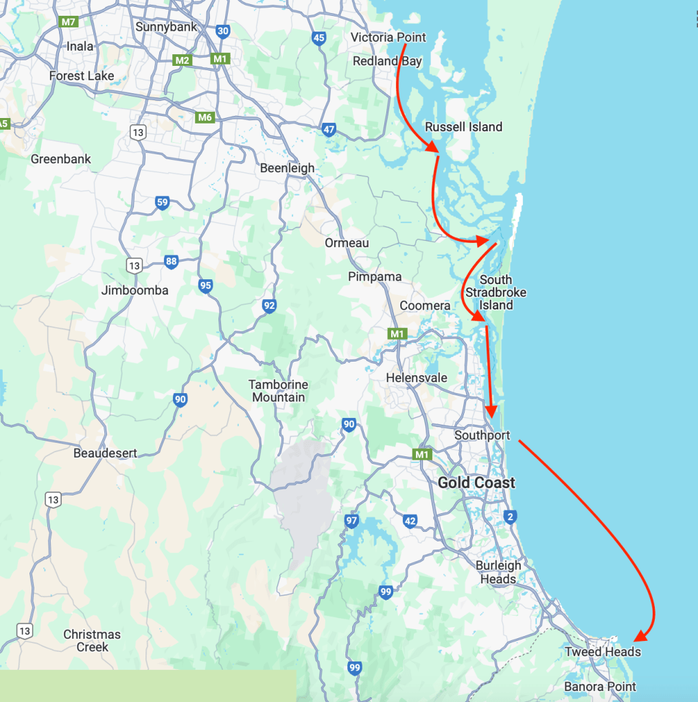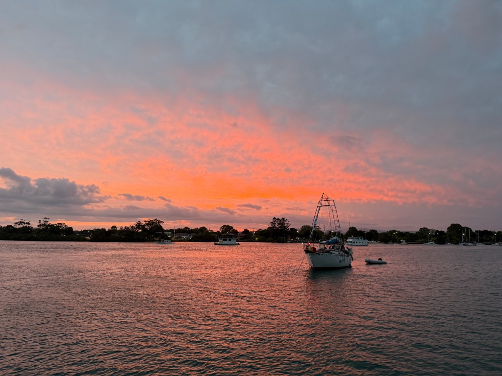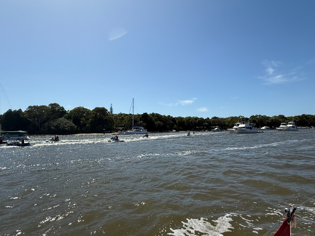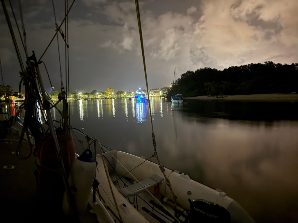 We had planned to head south after leaving Brisbane and find a place to anchor in South Port, the main marina and anchorage area serving the Gold Coast. However, Julian advised us that South Port and the area around it would be insanely busy. His work as a commercial skipper routinely takes him there, and he warned us that over the Christmas break it would be a mad house of launches, tinnies (small aluminium boats with outboard engines) and jetskis — all trying to get wherever they were going as fast as possible and without a clue about COLREGS (the International Regulations for Preventing Collisions at Sea), the rules of the road at sea.