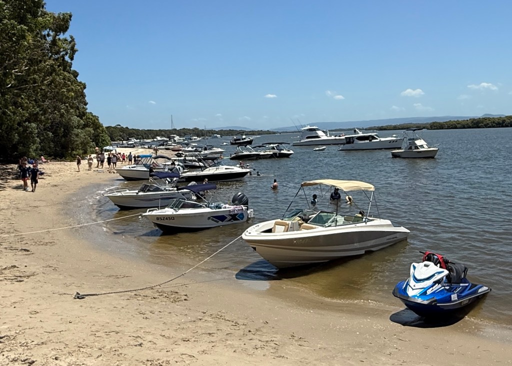 We stopped for a short while at Tipplers Bay on South Stradbroke Island, and squeezed into the space between land and channel along with dozens of other craft of all shapes and sizes. A short walk across the island we came across the ocean and an enormous beach that was practically deserted in comparison to the resort side. With gratitude we enjoyed a semblance of peace, went for a swim, and then rejoined the throngs for a beer before clearing out.