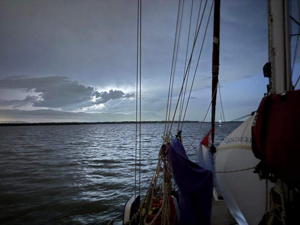 Trying to get away from the crowds we anchored later than day in another bay closer to South Port but separated from the main channel by a sand bank. That night we were entertained by a thunder storm that reminded us that nature and beauty could still be found in that humanity over-loaded environment.