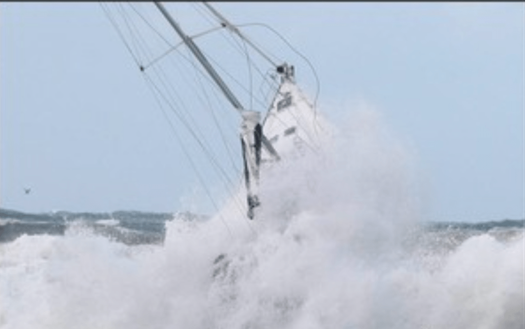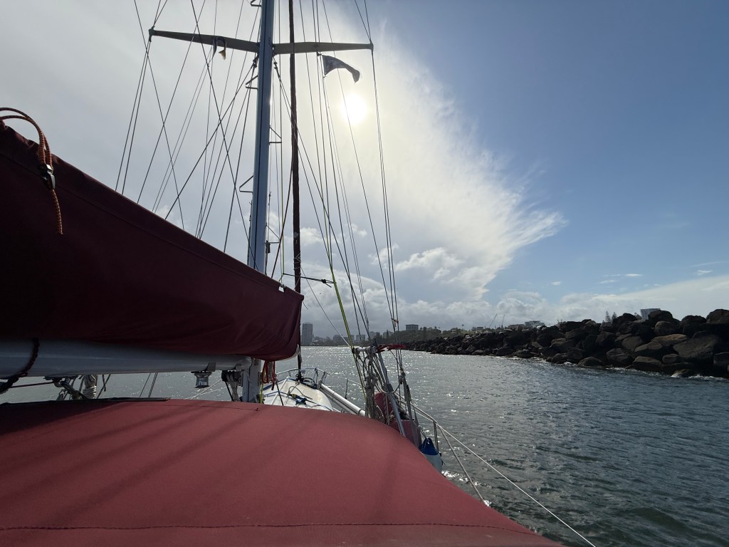 Early next day the jetskis were back, and the weather offered a small window for us to clear out. With an opportunity to leave there was no question of staying, so we packed up and headed towards the South Port bar, our escape route to sea and sanity. Before attempting the bar we called the local Marine Rescue chaps and been given the all clear, checked the on-line cams, and made sure that all the conditions were favourable. Even though everything was in our favour the bar still provided a couple of waves of sufficient size to stop Taurus in her tracks. When doing our research we had found some images of a yacht that attempted the bar in 60 odd knots of wind, with predictable consequences. It was a good reminder that you just can’t be complaisant about bar crossings.