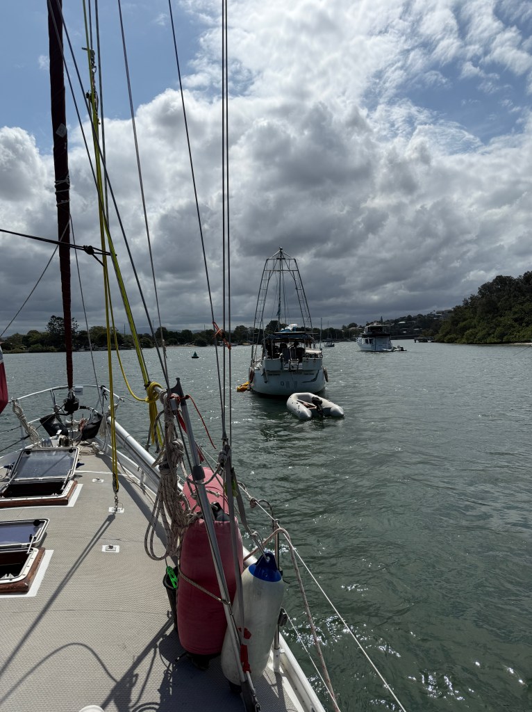 As the heavens opened we found our way to our chosen anchor site in Rose Bay. Our friend Eugene had arrived in Sydney at much the same time as us, so we unloaded the dinghy from the deck and ran ashore to pick him up. I hadn’t been sure that we were going to make it in time to see him, but as it turned out we made it with a few minutes to spare.