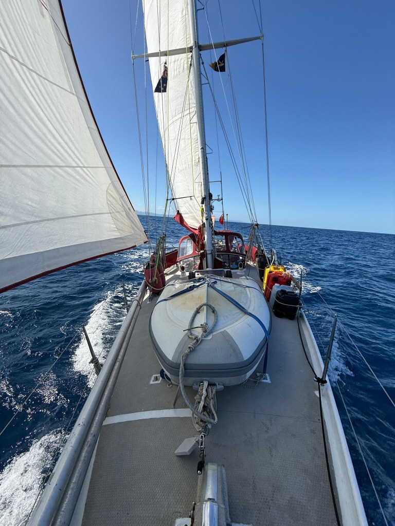 As previously mentioned, Taurus’ average speed is about 5 knots. Less in light winds or lumpy sea states, more with a stronger breeze at the right angle of sail. On this sail, however, we were blown away to find ourselves consistently sailing at a speed far higher than we would expect in the light wind conditions. This it turned out was due to the East Australian Current, which was adding at least a couple of knots to our speed, enabling us to do 8 knots in less than 12 knots of wind. Fun!