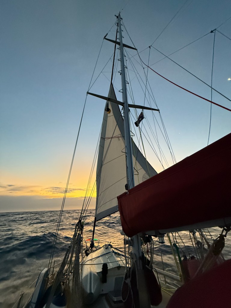 The sailing was spectacular, but all too soon the wind shifted to a northerly and we were pointing straight downwind. We poled out the jib and continued to sail fast, but the rolling motion was pretty uncomfortable.