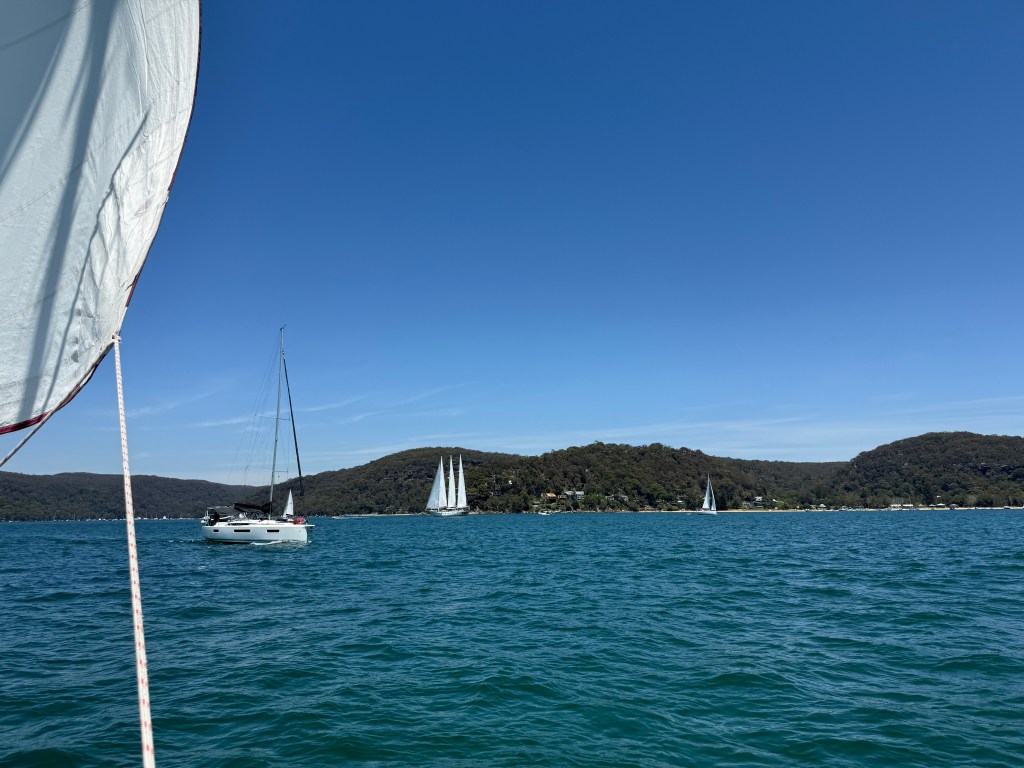 Pittwater is a drowned valley estuary boarded by national parks about 40 kilometres north of the Sydney CBD. Being so close it has become more or less a Sydney suburb, and the place where many Sydneyites choose to leave their boats. Happily, some of our friends from the Pacific were currently there, Ron and Sue from Eudora and Karl and Elaine from Salsa.