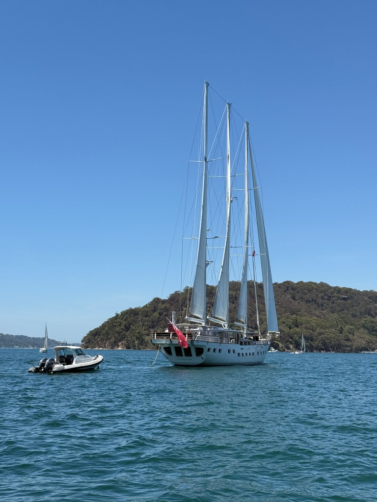 On arrival we had anchored in a safe but fairly exposed spot, not wishing to blunder around in the dark. So in the morning we sought advice and found a nice mooring, courtesy of the Royal Sydney Yacht Squadron, in Coasters Retreat, aka ‘The Basin.’ Pittwater would have been idyllic at one time, and it is still spectacular, but today, especially at this time of the year, it’s a bit hectic. From multi-million dollar super yachts to the humblest of tinnies, all can be found with their owners trying to enjoy time on the water.