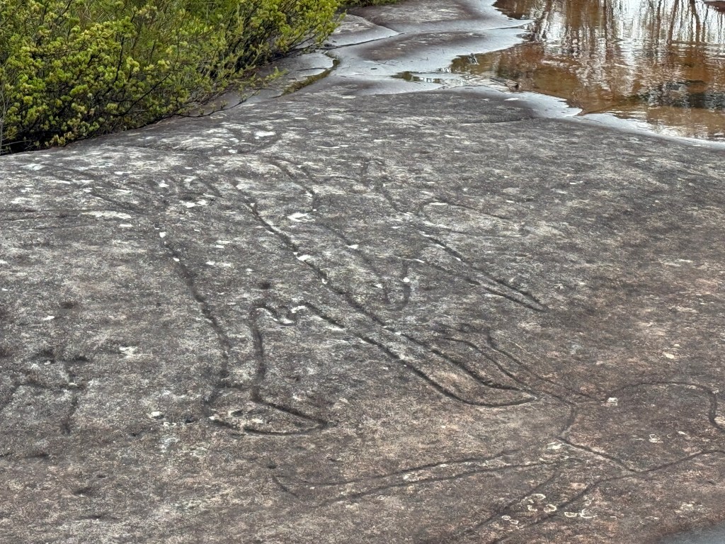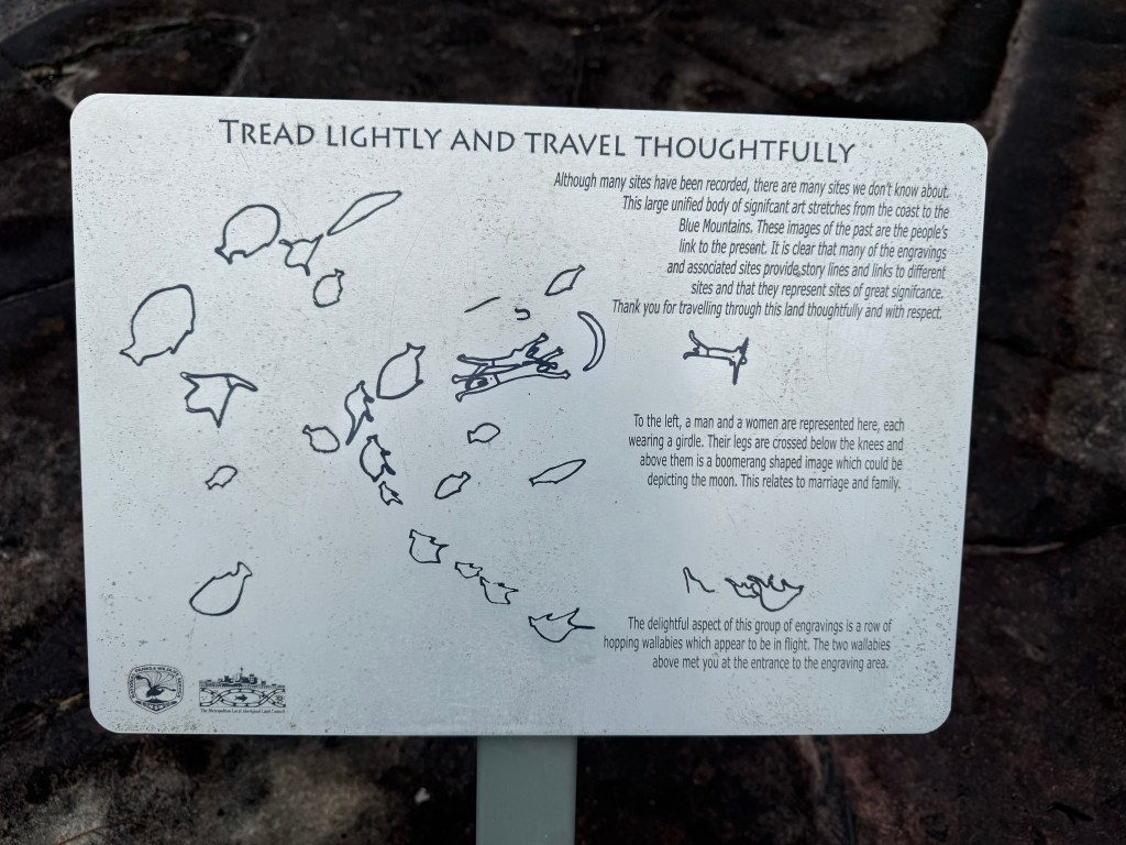 The campground also held a signpost pointing towards Aboriginal carvings. The walk followed a wide concrete road up a steep hill, but after so much time on the boat it was nice to move and work our bodies a bit. The carvings were pretty interesting and may be up to a thousand years old.