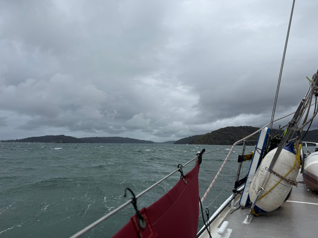 Still needing to get to Sydney we left early the next morning. However, the forecast was entirely wrong and instead of a light to mid easterly we were met by 30 knots from the south and some hefty seas. We persevered for a little while but conditions weren’t improving and we were going to have to sail so far off shore to get south that it didn’t seem worth the effort and possible damage to gear. Taurus also wasn’t set up for heavy weather, the life lines, which you attach yourself to when on deck to prevent being swept overboard, for example having been stowed away to prevent UV damage. Discretion being the better part of valour, we tucked our tail between our legs and ran back into Pittwater.