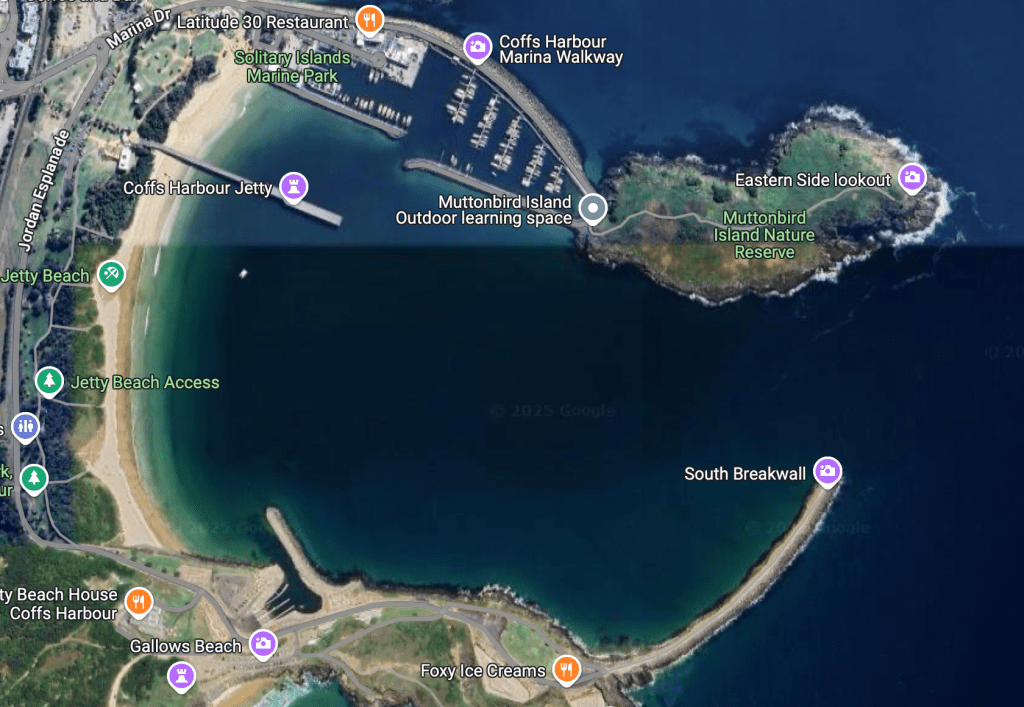 Feeling virtuous we headed into the protected harbour to visit the local chandler and town. Unfortunately many shops, including the chandler, were closed for the holidays, but it was nice to wander round. Coffs seemed like a nice place, much smaller and less consumer focussed than the touristy Gold Coast cities we had grown used to. Back on the boat we were entertained all day by children leaping from the jetty, upsetting the turtles and odd dolphin.