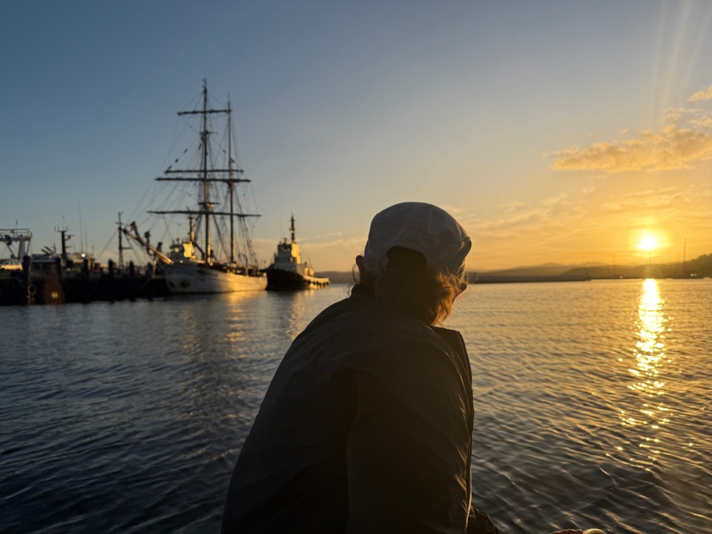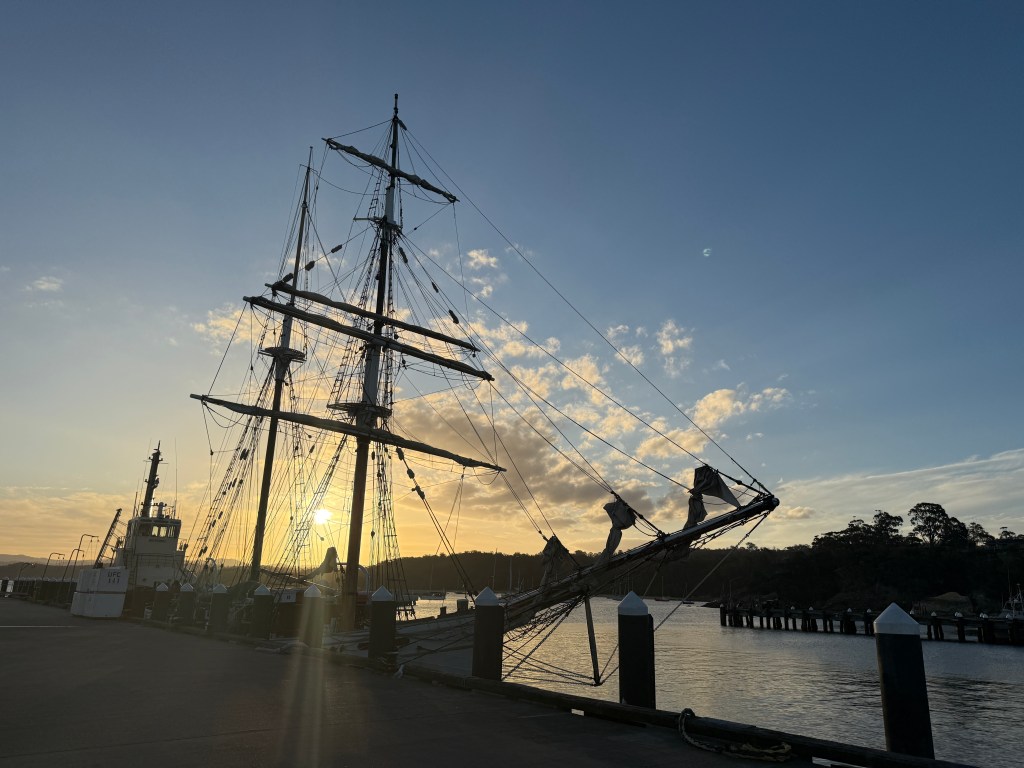 The deep harbour allows the entry of cruise ships, and whilst we there a new floating behemoth appeared almost every day, waking everyone up with their tannoyed instructions to passengers and crew. Of greater charm were a couple of tall ships that arrived, heading home after their sojourn to Tasmania for the Wooden Boat Festival. It was disappointing not to be able to make the festival, but still exciting to see these historic vessels being used for what they were intended, and keeping old traditions alive.