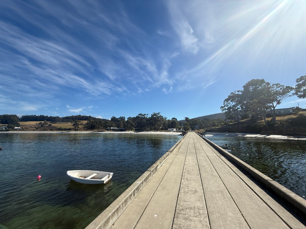 Cara had a date to travel back to New Zealand approaching. Her mum was having an operation and needed some support. We had to keep moving, so we headed across Storm Bay to the town of Nubeena. The sail to this beautifully protected bay was another highlight, the wind and sea gods smiled upon us, and even sent us a double rainbow.