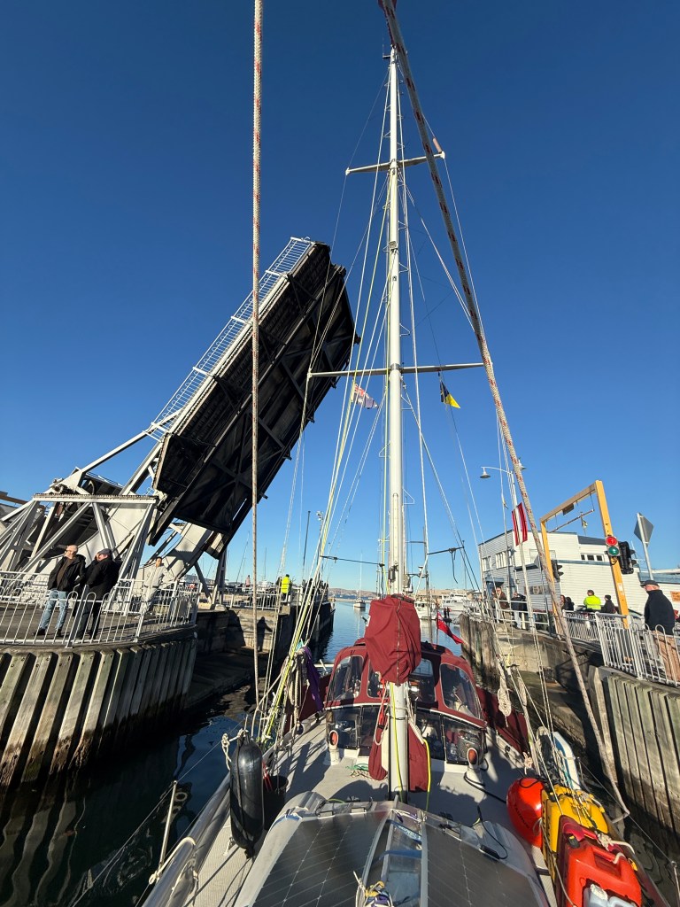 After eating and drinking our fill, and replacing our mattresses (thanks to Foam Land in Hobart who really helped us out), it was time to leave our cosy berth. We headed over to an anchorage at Bellerive and next day joined the twelve CYCT boats who were getting ready to enter Constitution Dock together so that the bridge didn’t have to be open any longer than necessary.