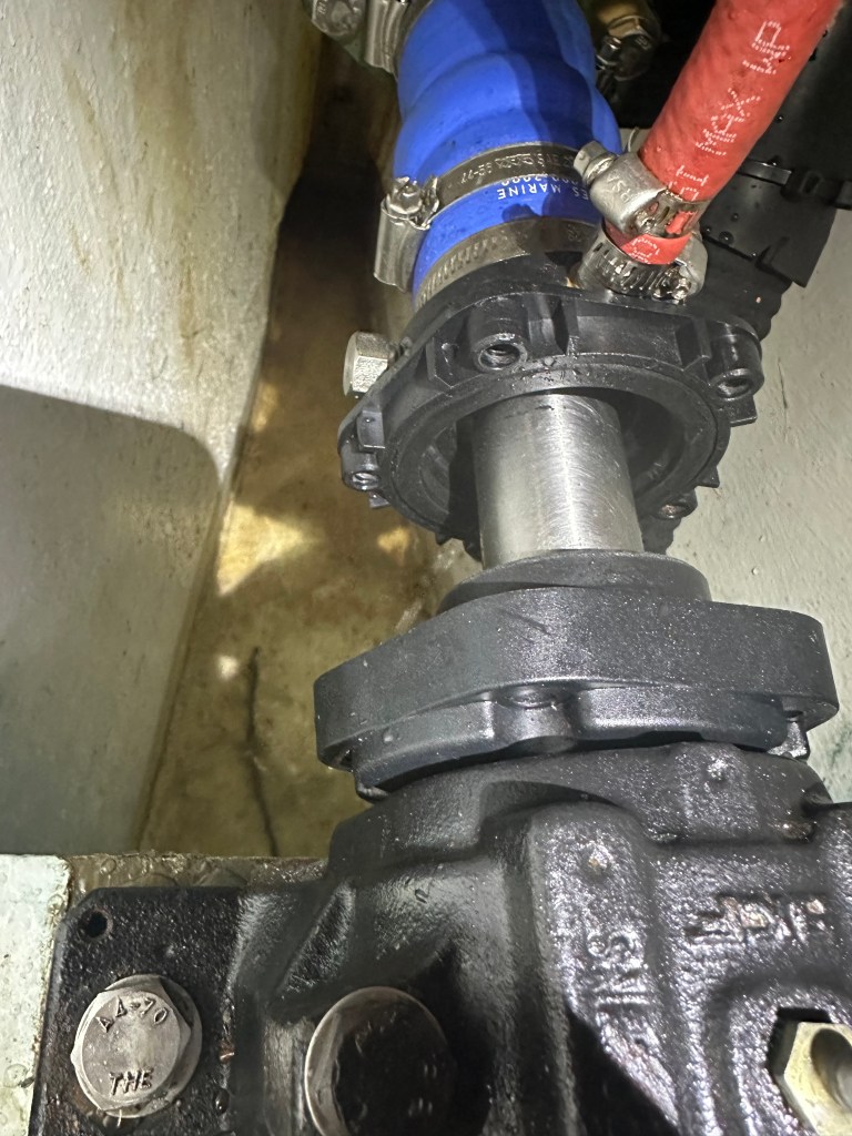 Then the bilge alarm went off. Opening up the engine compartment we found something like 2–300 litres of water sloshing around. Bugger. It turned out that this was coming from the dripless stern gland seal, a seal that is supposed to prevent the sea coming in from where the propellor shaft exits… Miles from any help, with no possibility of being able to lift the boat, and with little time before a long awaited opportunity to make our next passage, the timing couldn’t have been much worse (though in hindsight, the alarm going off when we were halfway to Port Davey would have been much much worse). On the plus side our ‘OMG bilge pump’ made light work of emptying the boat, but what to do? It didn’t seem wise to head to an extremely remote area of Tasmania in a boat trying to sink…