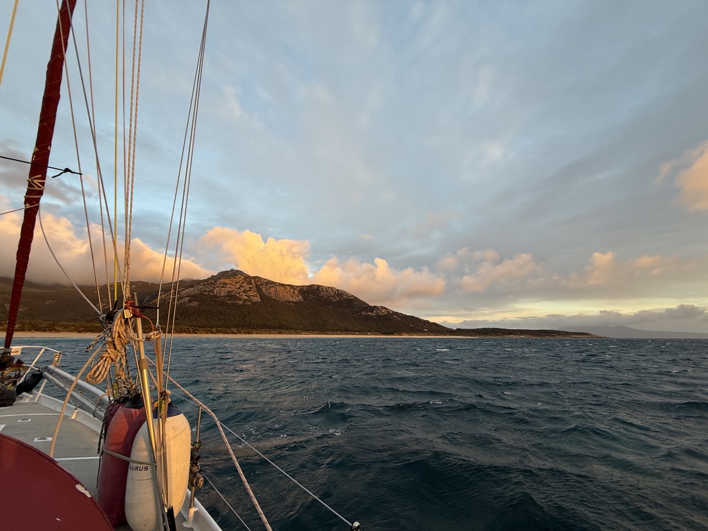 As luck would have it, Sea Eagle had grabbed the same ‘last chance’ weather window and departed the same day. Although we were the only two vessels for miles around we still managed to find ourselves on a collision course as we threaded our way through the islands to Banks Strait. Fortunately, Cara was on the wheel and did the considerate thing by slowing us down and refusing to heed my remarks about it being a race…
