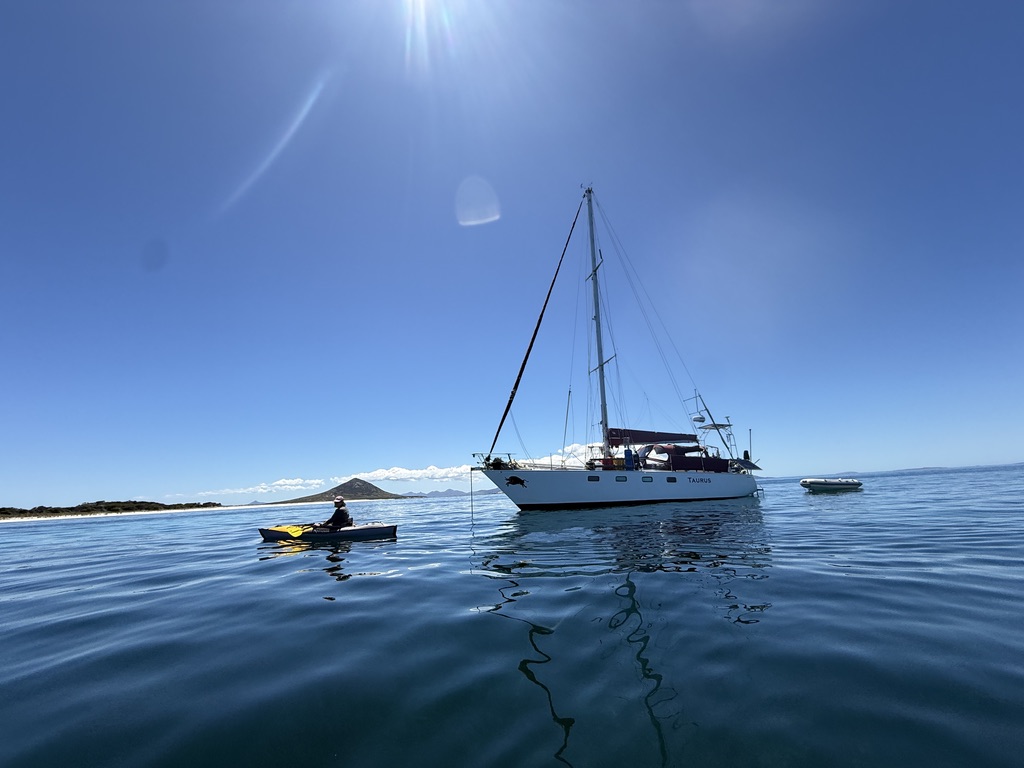 The following day off Badger was a cracker. Bright sun, warm breezes, and calm conditions. We inflated the kayaks and headed out for a paddle.