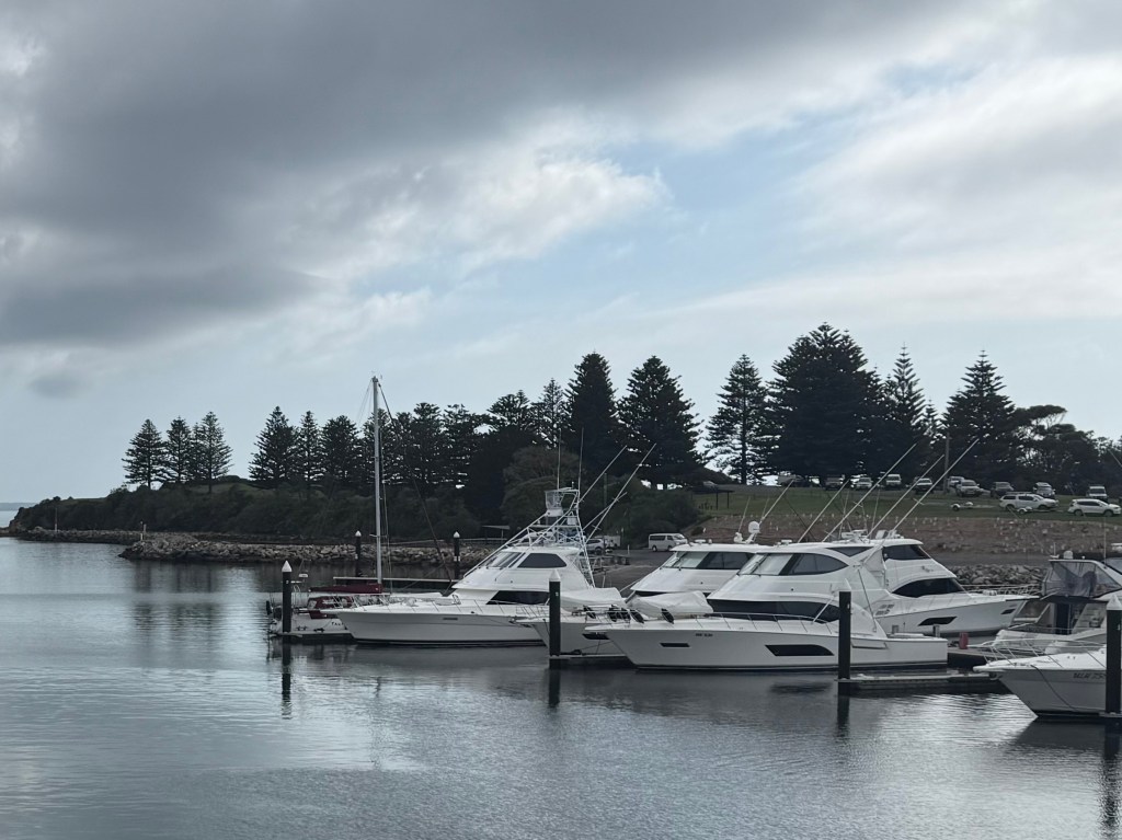 Words failed me. In a country where homelessness is becoming an endemic problem and cost of living is never far from the headlines, some people are happy to spend a small fortune to own a boat whose sole purpose is to occasionally be used to try and catch a fish because it’s fun to catch. As many of the released fish subsequently die, the ‘catch’ part in the previous sentence could more honestly be replaced by ‘kill.’ After visiting Eden we shook our heads at the stupidity of the whaling industry, whose greed drove several species of whale to near extinction and caused the business itself to implode. But here, in this day and age, there were perhaps a dozen of these massive boats in this tiny port whose sole purpose was to kill (sorry, catch) a few species of fish or shark for entertainment. How long can any species survive this kind of assault? According to Google: