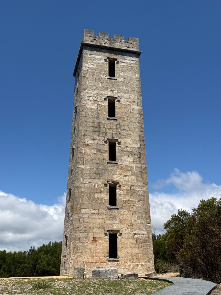 From the bay a short dinghy ride takes you to a beach from which you can access a road that takes you to Boyd’s Tower. We hadn’t yet re-acclimatised to Aussie mainland temperatures, so it was stinking hot, and all the engine work I had had to do in Lakes Entrance had tweaked my back, so it was a bit of a slow walk.