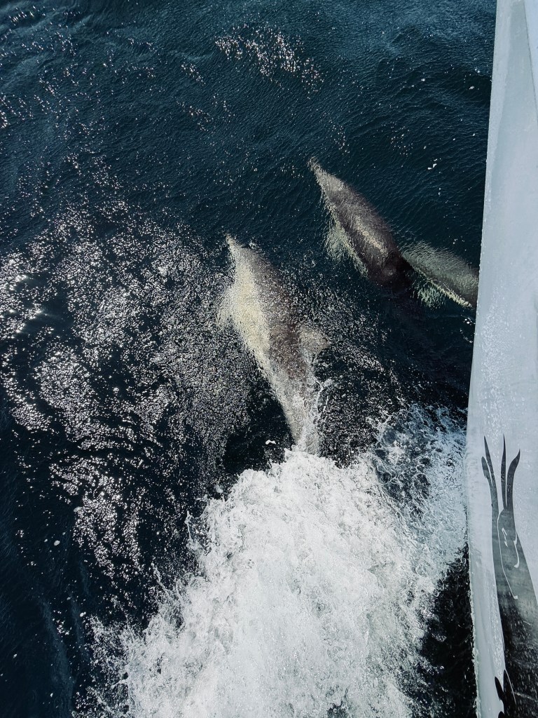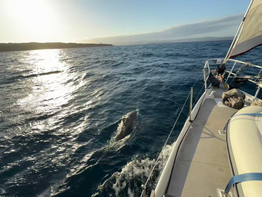After a few hours the wind filled in and we could turn the engine off and enjoy some peace. Still, it was a slow old slog, and it was nice to see landmarks such as Gabo Island and Green Cape Lighthouse appear and oh, so, so, slowly vanish behind us. The highlight of the trip was a couple of pods of dolphins who joined us. I had the ‘bright’ idea of trying to put a Go Pro on a boat hook to see if I could film them underwater, but the dolphins didn’t seem to take too well to it and left soon afterwards. This area was once famed for its whale hunting, so perhaps the trauma still lingers in the cultural memories of its marine mammals?