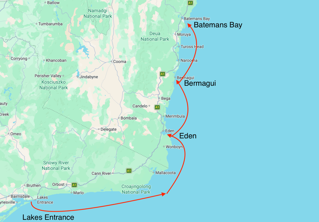 Next time: we sail on to Jervis Bay and Cronulla.