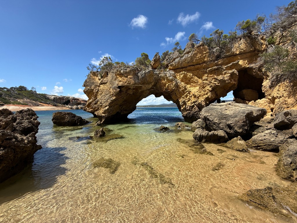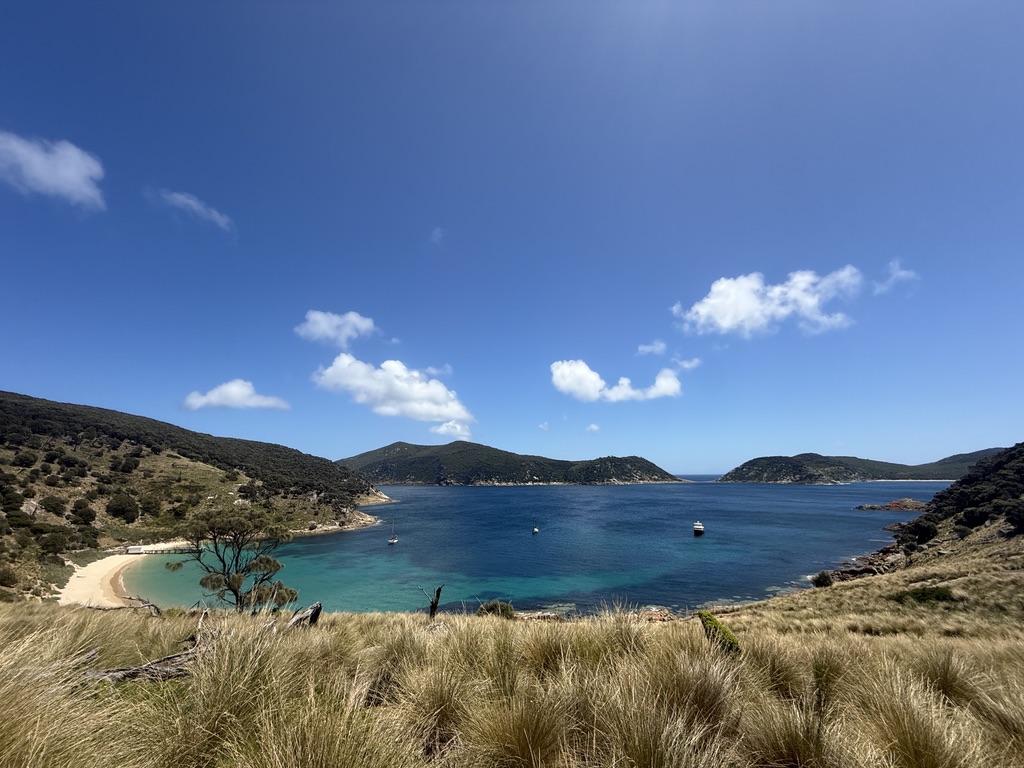 From the bay a short dinghy ride takes you to a beach from which you can access a road that takes you to Boyd’s Tower. We hadn’t yet re-acclimatised to Aussie mainland temperatures, so it was stinking hot, and all the engine work I had had to do in Lakes Entrance had tweaked my back, so it was a bit of a slow walk.