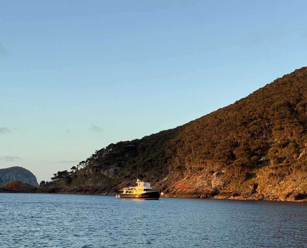 At about two in the morning, with our speed regularly dropping to around one and a half knots, I caved in to temptation and turned the engine on. Motor sailing allowed us to attain something more like a respectable speed; but I don’t like to motor sail, or indeed motor if I can help it. First and foremost, Taurus is a yacht, she’s built to sail; second, diesel costs money (though not a lot, we use about 3-4 litres of diesel an hour); third, motoring is noisy; and, lastly, motor sailing is bad for our gearbox. We were told by a very experienced mechanic in Launceston that motor sailing was probably what caused our friction plates to glaze and eventually fail — uneven and light power demand creating excess wear. So, with a view to prolonging the longevity of our gearbox, it being economically unfeasible to replace the clutch plates alone in this insane, throw away, era, we try not to motor sail.