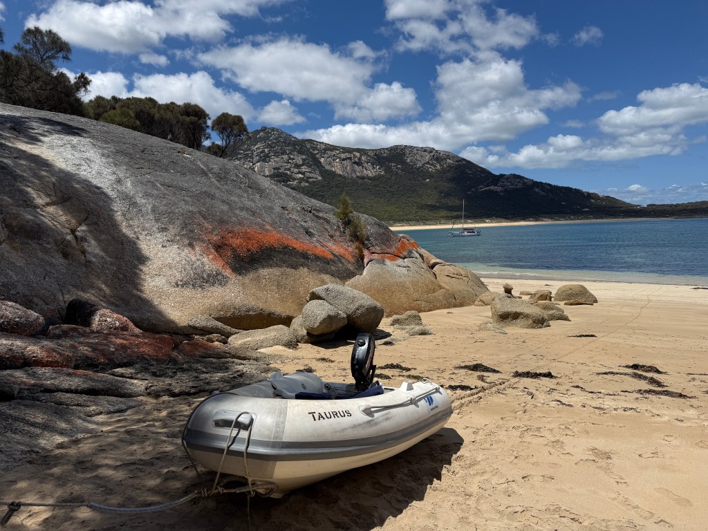 There was a possible weather window the next morning, a lightish southerly that we hoped would help us to get north. Wanting to leave early, we raised the dinghy and got everything ready for an early start.