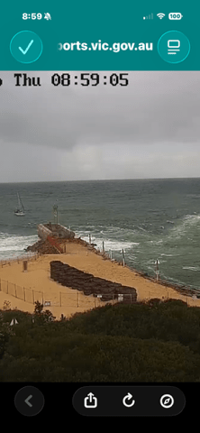 Another southerly was due that night, so we got ready to go and stayed up till 11:00 pm, but using a weather app we could see that the ‘real time’ gusts tracking north were far stronger than predicted, in the high 40s. When the wind reached us in Bermagui it struck with a roar, and we were getting over thirty knots in the marina, which is protected from the south. You’d have to add at least another ten knots to that in unprotected water, and no-one chooses to go sailing in forty knots. We went to bed.